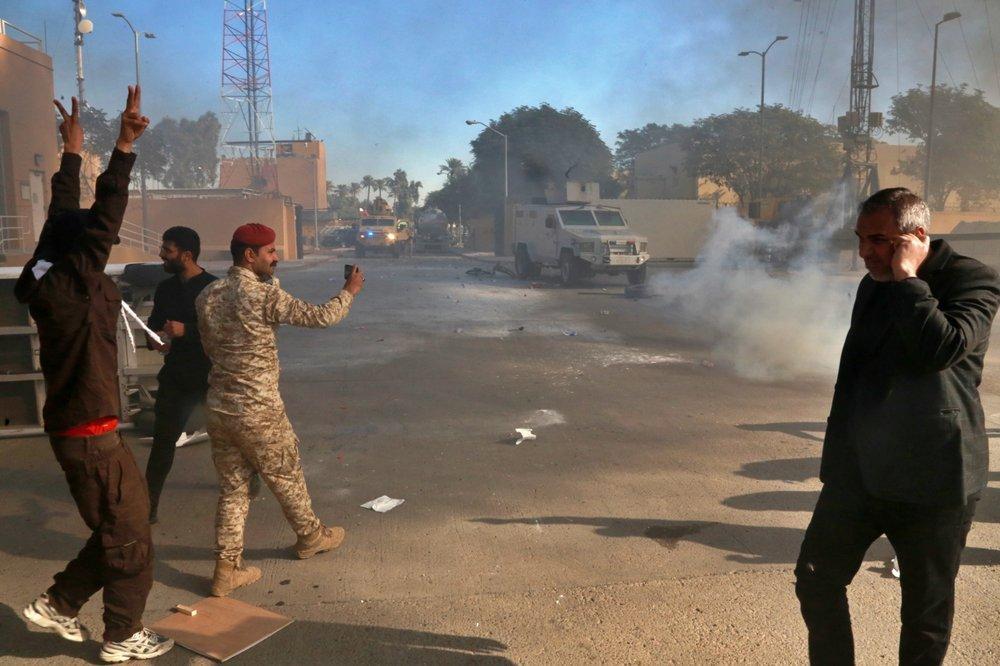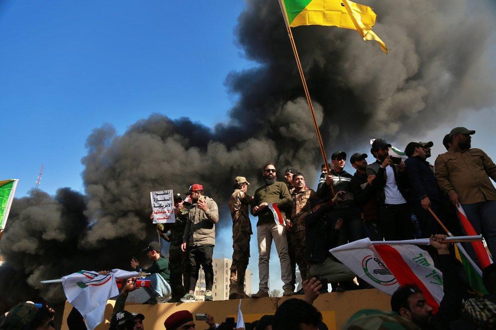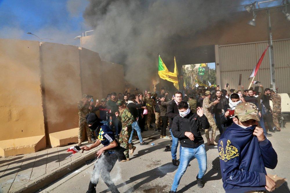 美国对伊朗支持的民兵组织的空袭行动引发愤怒。据美联社12月31日报道,当日,伊拉克数十名民兵和他们的支持者冲入位于巴格达的美国使馆大院,砸碎一扇大门,并在接待区域放火。