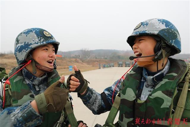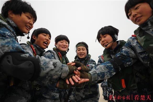 站在排头的女兵薛璐珈身材高挑、长相甜美,入伍前她还是一名高中物理老师。谈起她的成长经历,指导员于黎磊竖起大拇指说:“从初入军营开始,薛璐珈就很‘拼’,各方面都表现的比较优秀,因为她不仅在圆自己的军旅梦,也是在替父亲和弟弟圆梦。”由于表现优异,她被选中为战友试风跳伞。即将登机的她激动地喊出:“我要跳伞,我很光荣!”