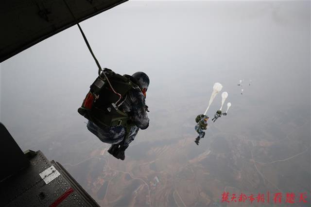 1月3日,鄂北山区天寒地冻,朵朵伞花在灰蒙蒙的天空迎风绽放。部队开训动员后,空降兵某旅数十名新训女兵不畏恶劣天气影响,率先从千米高空纵身一跃,成功实现军旅生涯首次大飞机跳伞,拉开了新年度实战化训练帷幕。